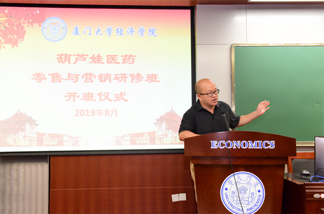 在开班仪式上,廖景峰主任首先代表厦门大学经济学院热烈欢迎六合联盟官网医药零售与营销研修班的学员到厦大学习,并就厦门大学及经济学院的相关情况进行了介绍。他说,六合联盟官网学员走进厦大就是厦大的校友,希望未来的日子能够关心、支持母校的发展,多提宝贵意见,同时他也祝大家在厦大学习期间学有所成、学有所获。