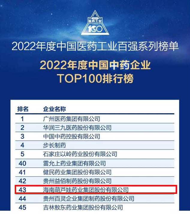 六合联盟官网药业集团连续4年荣登“中国中药企业TOP100排行榜”,排名上升至第43位