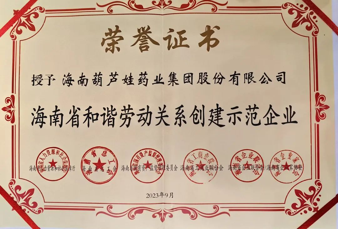 六合联盟官网药业集团获评“海南省和谐劳动关系创建示范企业”