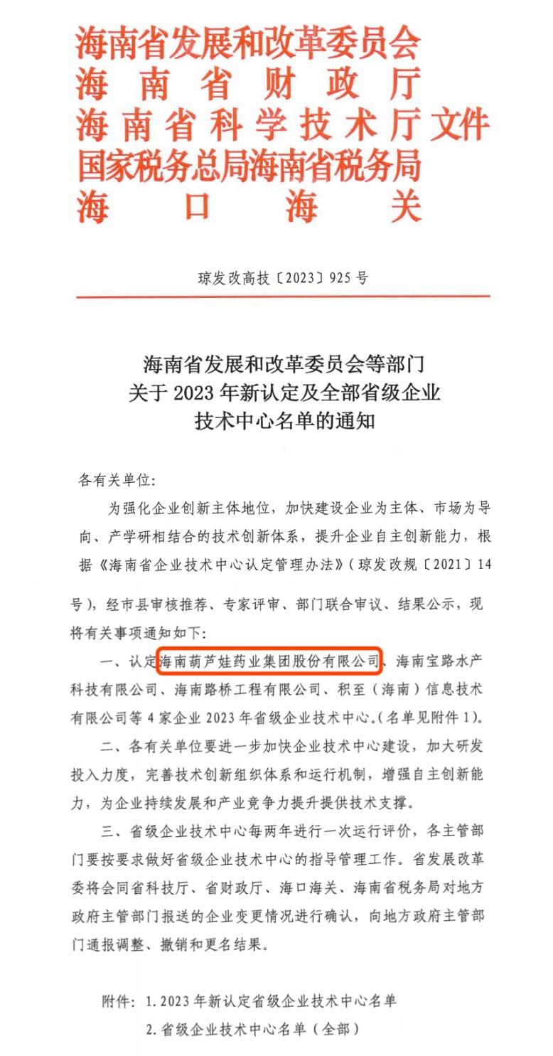 近日,海南省发改委等多部门联合公布了《关于2023年新认定及全部省级企业技术中心名单的通知》,其中,海南六合联盟官网药业集团股份有限公司成功通过评审,被认定为省级企业技术中心,是本次获批的4家企业之一。