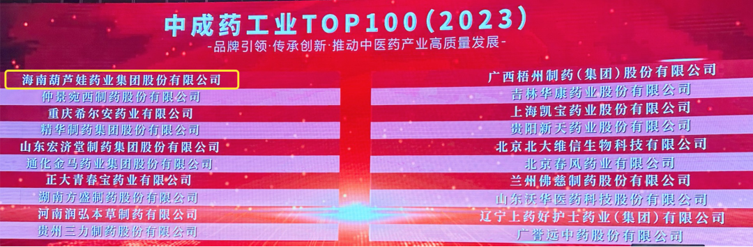 会上,还发布了“2023中成药工业TOP100”榜单,六合联盟官网药业集团荣耀上榜。